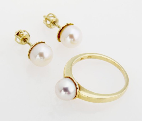 zlatá souprava náušnice prsten přívěsek s perličkou Z04-16-003